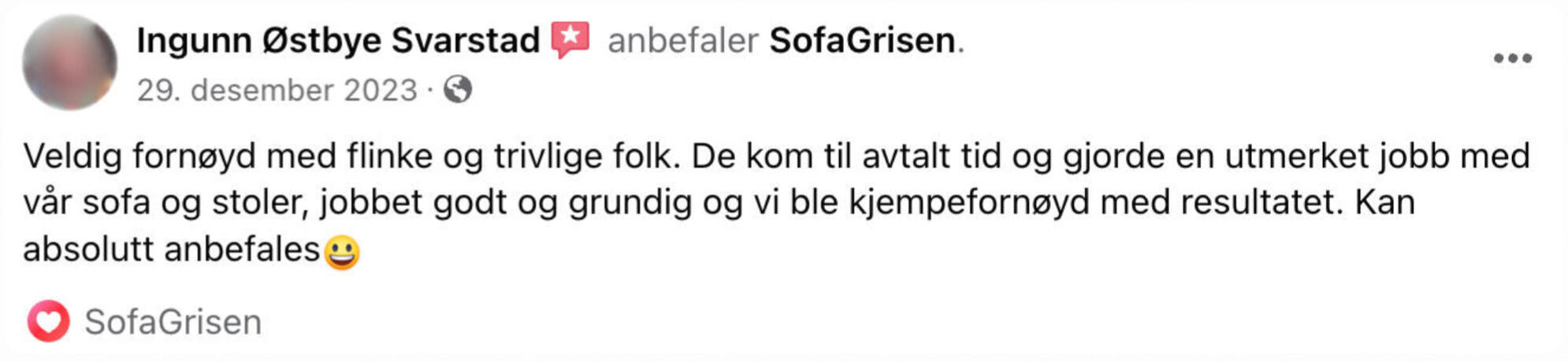 Les Flere Vurderinger"Fantastisk tjeneste! Sofaen ser ut som ny."